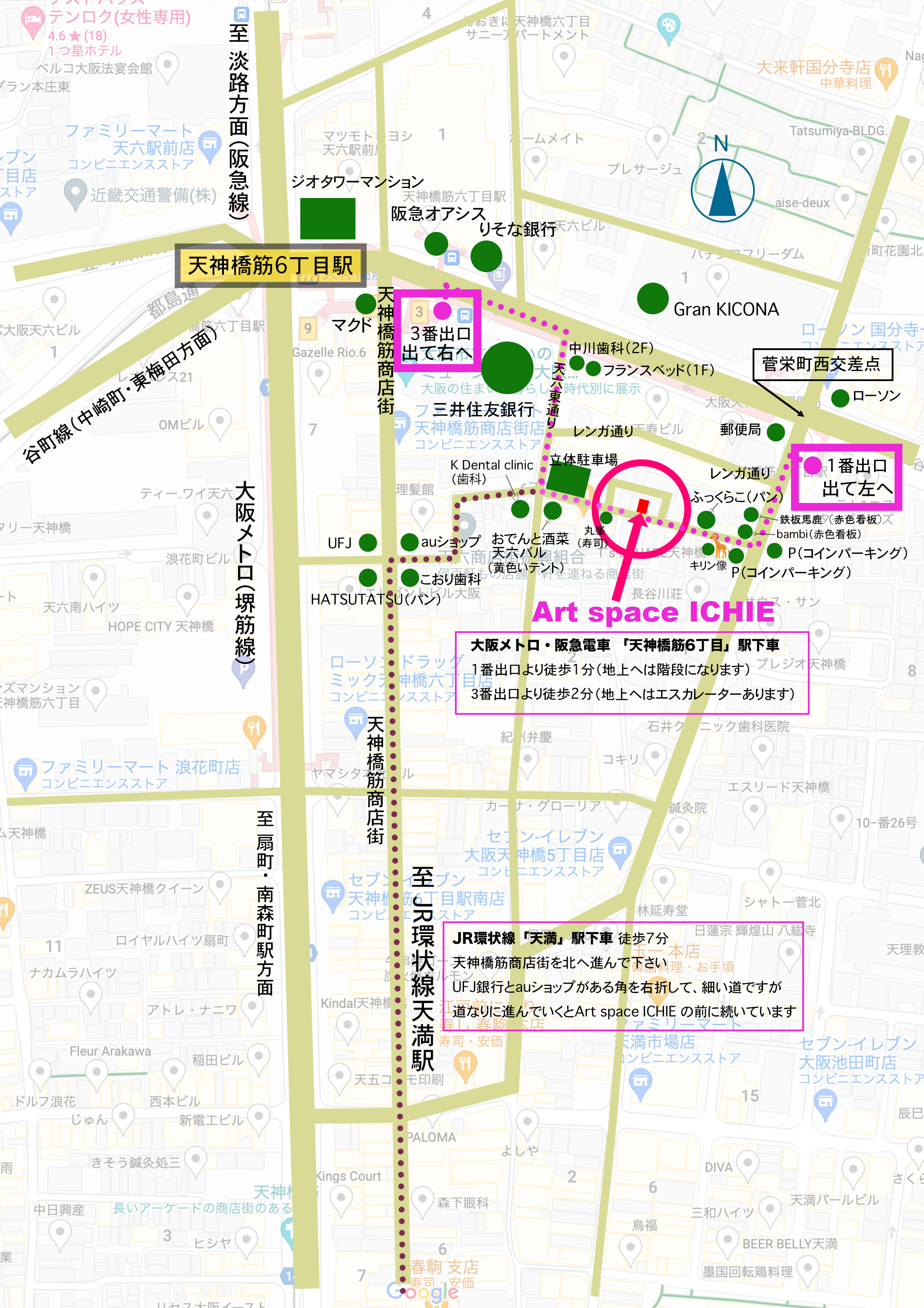 ★最寄駅:大阪メトロ(堺筋線、谷町線)・阪急電車「天神橋筋六丁目」駅下車スグ★3番出口より徒歩2分(地上へはエスカレーター、エレベーターがあります)★1番出口より徒歩1分(地上へは階段になります) ↓ studio ICHIE エントランス ↓ ワインカラーの宅配ボックスとベージュのテントが目印